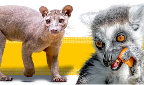 S radostí oznamujeme, že jsme doplnili jídelníček v pražské zoo – fossa a lemur si už pochutnávají na svém jídle díky stravenkám z FRACTALu.